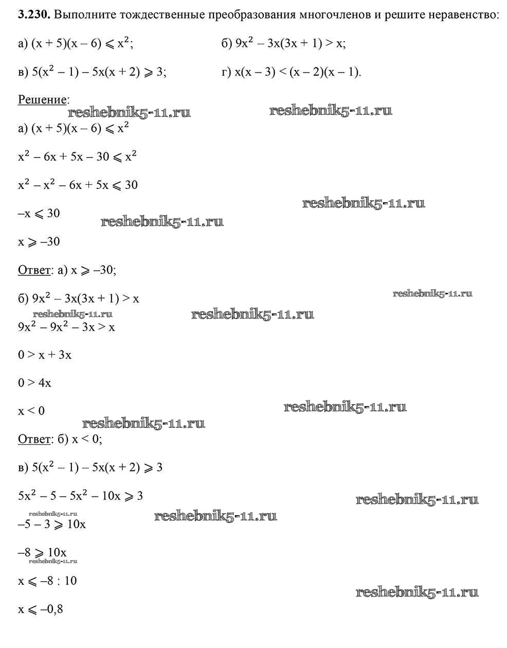 Готовая домашняя работа с ответами по Алгебре за 7 класс Арефьева, Пирютко Учебник Народная асвета 2017 - Глава 3 3.230