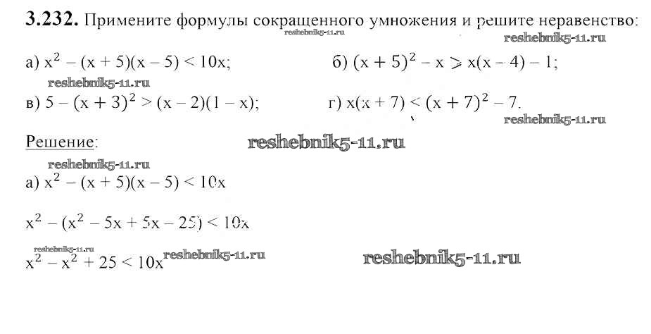 Готовая домашняя работа с ответами по Алгебре за 7 класс Арефьева, Пирютко Учебник Народная асвета 2017 - Глава 3 3.232