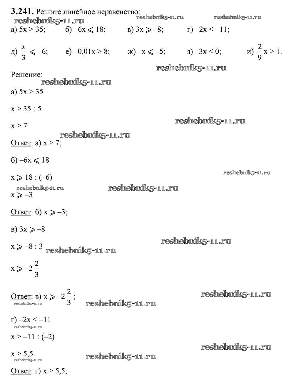 Готовая домашняя работа с ответами по Алгебре за 7 класс Арефьева, Пирютко Учебник Народная асвета 2017 - Глава 3 3.241