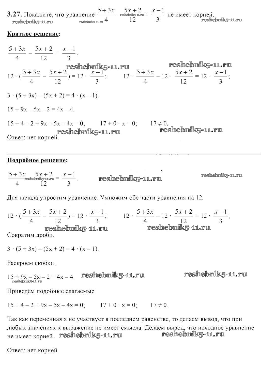 Готовая домашняя работа с ответами по Алгебре за 7 класс Арефьева, Пирютко Учебник Народная асвета 2017 - Глава 3 3.27