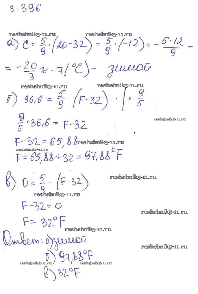 Готовая домашняя работа с ответами по Алгебре за 7 класс Арефьева, Пирютко Учебник Народная асвета 2017 - Глава 3 3.396