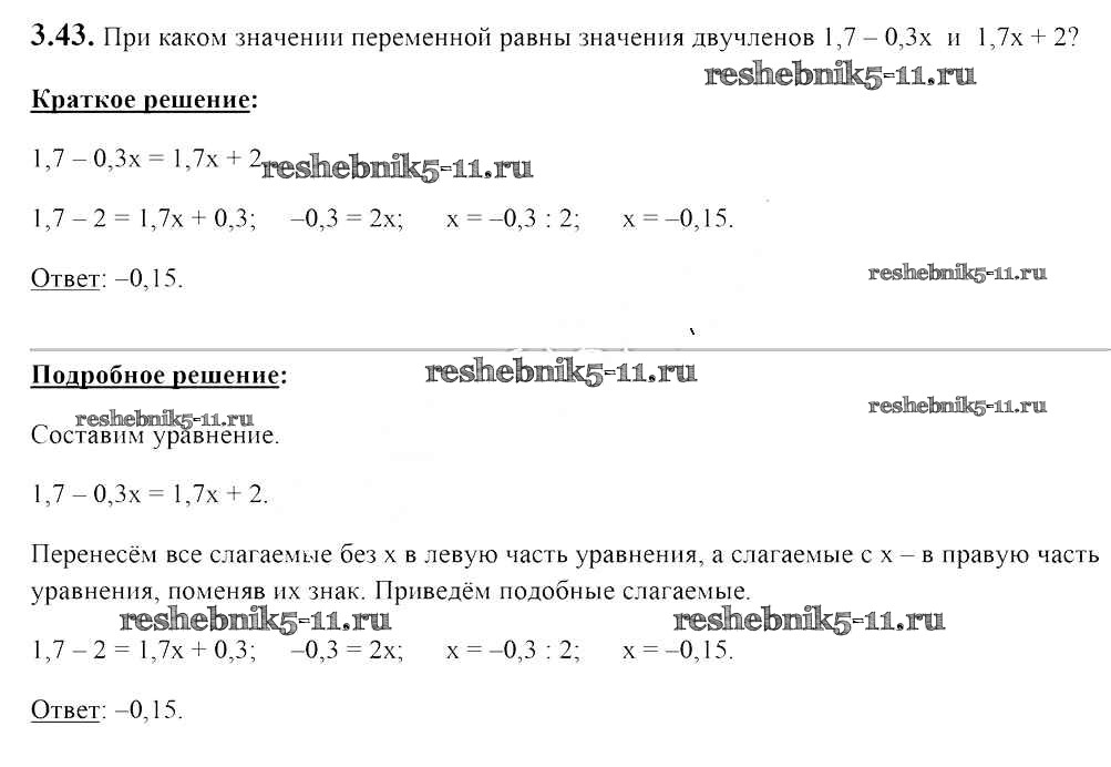 Готовая домашняя работа с ответами по Алгебре за 7 класс Арефьева, Пирютко Учебник Народная асвета 2017 - Глава 3 3.43