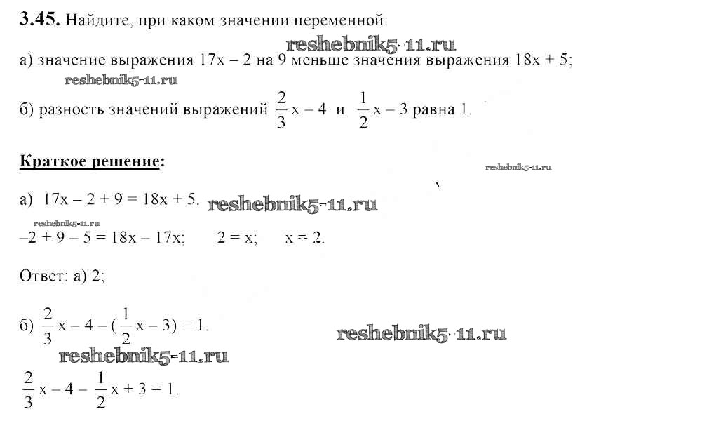 Готовая домашняя работа с ответами по Алгебре за 7 класс Арефьева, Пирютко Учебник Народная асвета 2017 - Глава 3 3.45