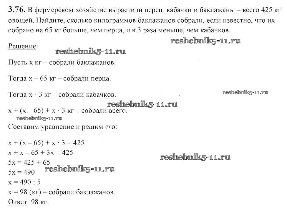 Готовая домашняя работа с ответами по Алгебре за 7 класс Арефьева, Пирютко Учебник Народная асвета 2017 - Глава 3 3.76