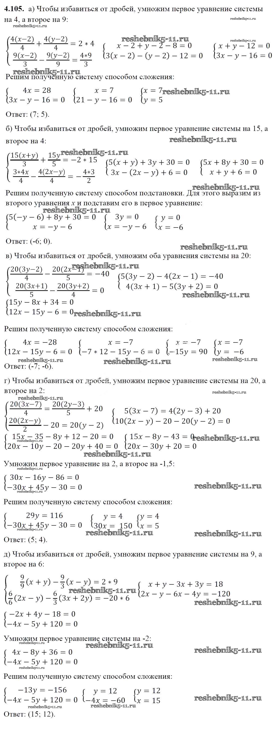 Готовая домашняя работа с ответами по Алгебре за 7 класс Арефьева, Пирютко Учебник Народная асвета 2017 - Глава 4 4.105