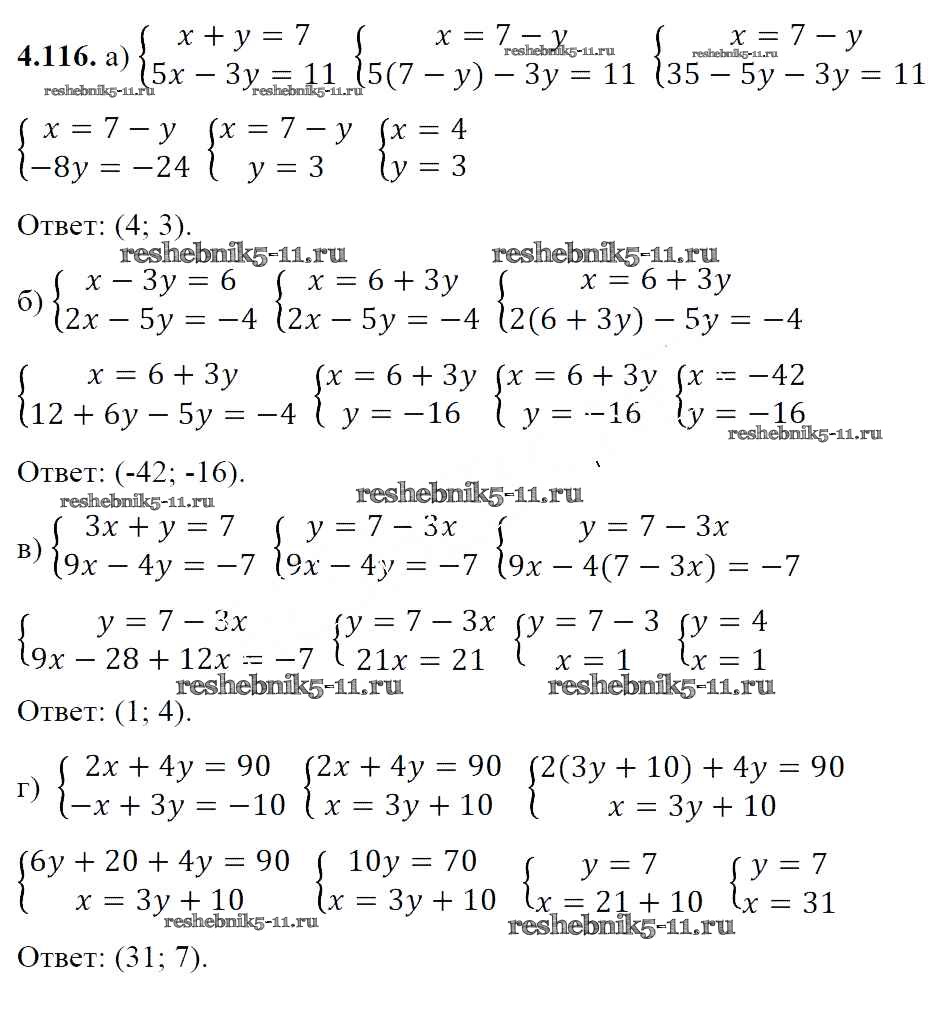 Готовая домашняя работа с ответами по Алгебре за 7 класс Арефьева, Пирютко Учебник Народная асвета 2017 - Глава 4 4.116