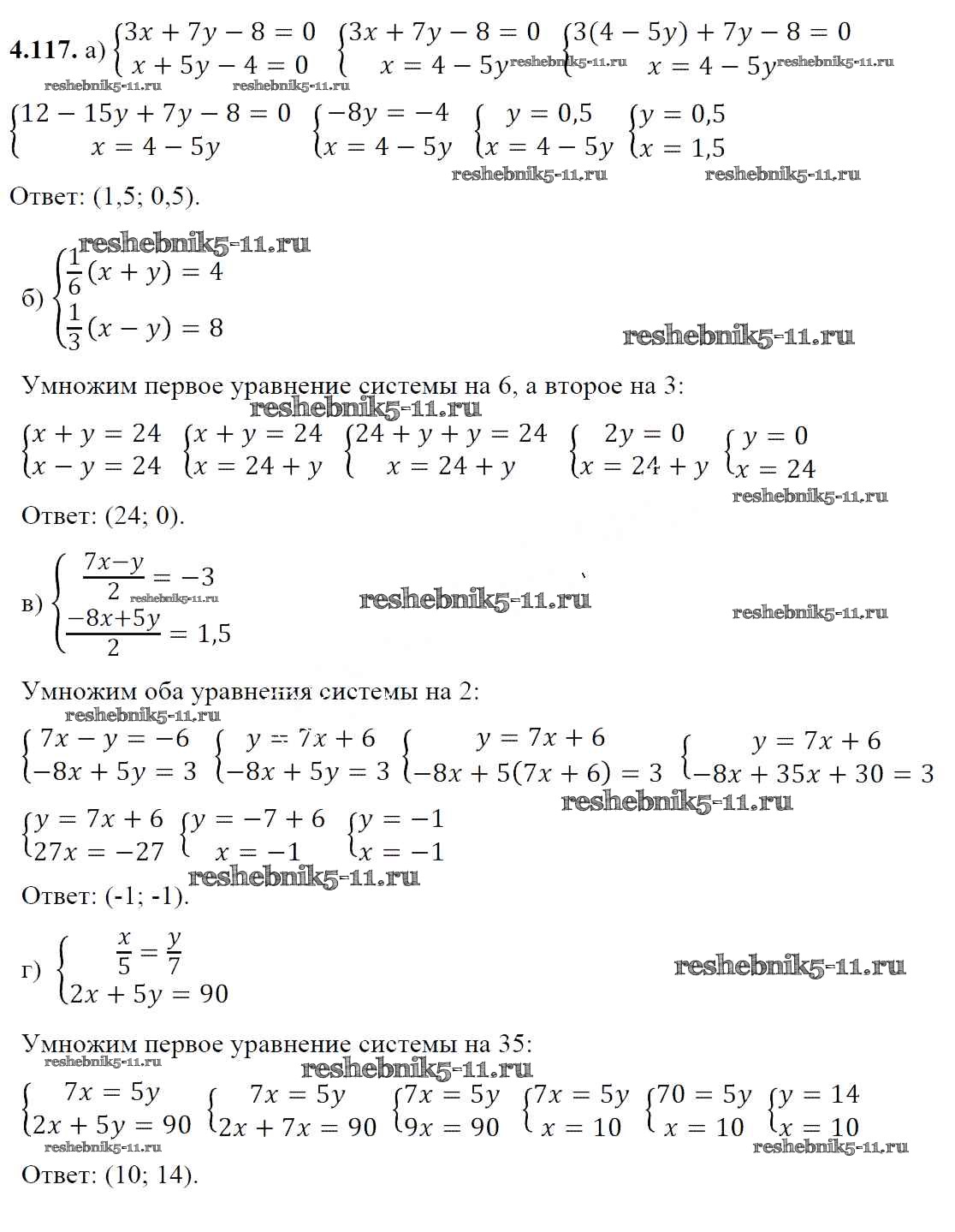 Готовая домашняя работа с ответами по Алгебре за 7 класс Арефьева, Пирютко Учебник Народная асвета 2017 - Глава 4 4.117