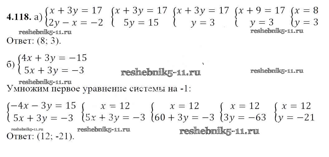 Готовая домашняя работа с ответами по Алгебре за 7 класс Арефьева, Пирютко Учебник Народная асвета 2017 - Глава 4 4.118
