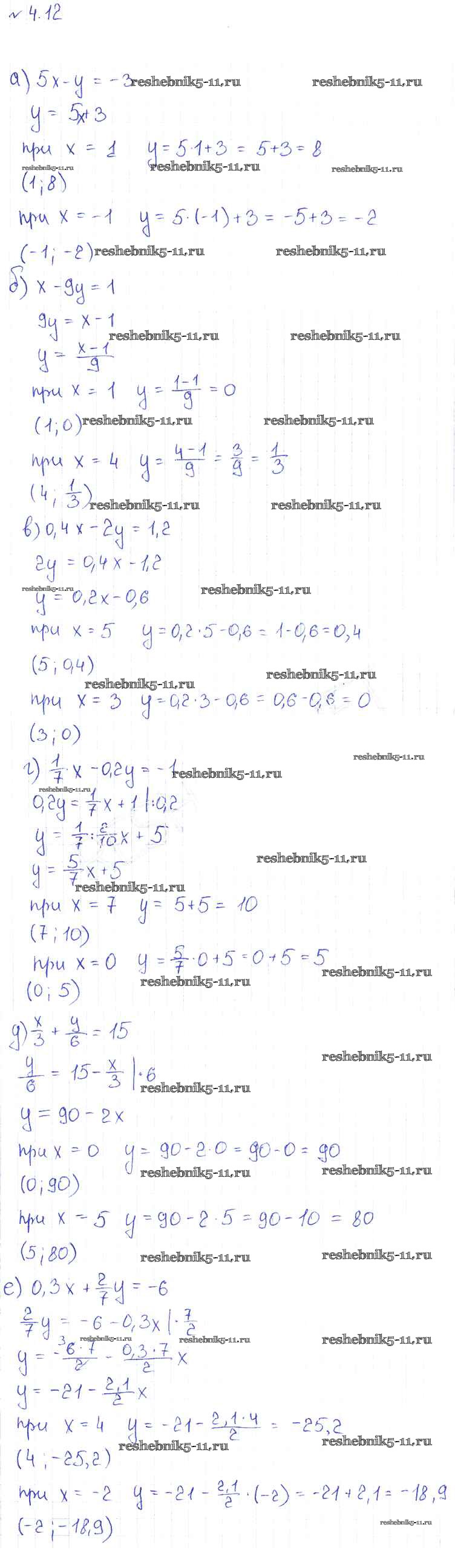 Готовая домашняя работа с ответами по Алгебре за 7 класс Арефьева, Пирютко Учебник Народная асвета 2017 - Глава 4 4.12