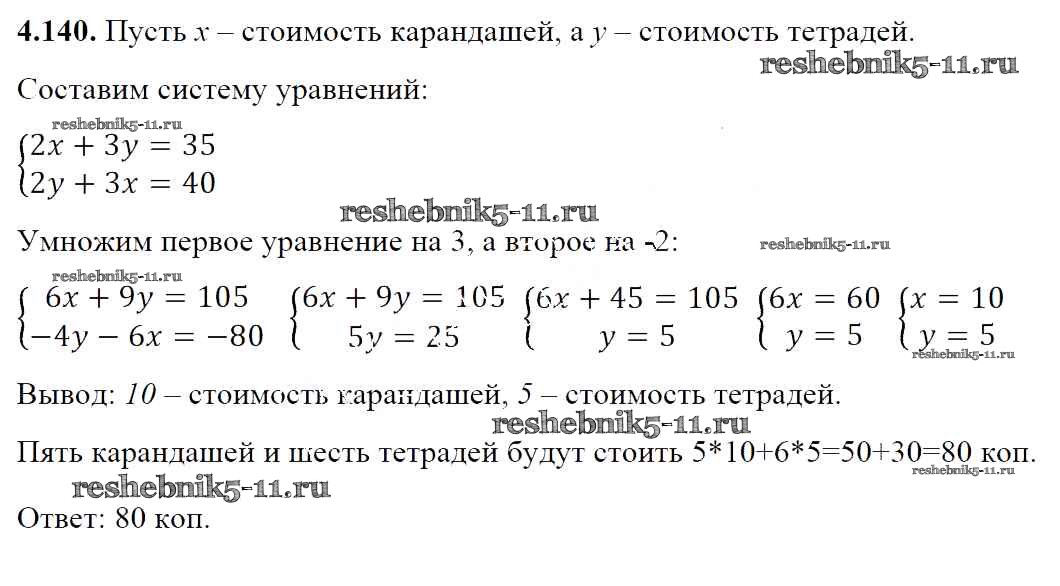 Готовая домашняя работа с ответами по Алгебре за 7 класс Арефьева, Пирютко Учебник Народная асвета 2017 - Глава 4 4.140