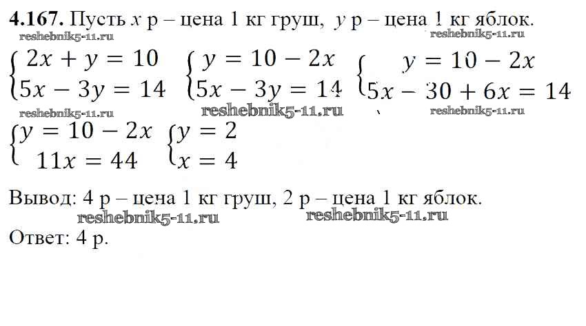 Готовая домашняя работа с ответами по Алгебре за 7 класс Арефьева, Пирютко Учебник Народная асвета 2017 - Глава 4 4.167