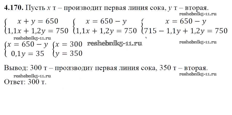 Готовая домашняя работа с ответами по Алгебре за 7 класс Арефьева, Пирютко Учебник Народная асвета 2017 - Глава 4 4.170