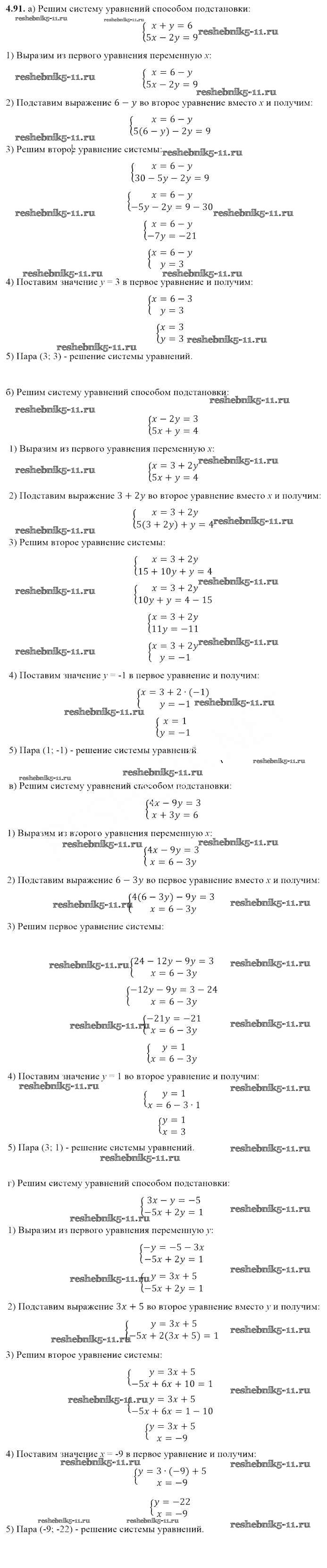 Готовая домашняя работа с ответами по Алгебре за 7 класс Арефьева, Пирютко Учебник Народная асвета 2017 - Глава 4 4.91