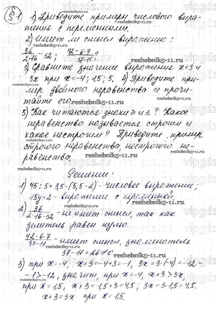 Готовая домашняя работа с ответами по Алгебре за 7 класс Макарычев, Миндюк, Нешков, Суворова Учебник Просвещение 2015 ФГОС - Контрольные вопросы и задания §1
