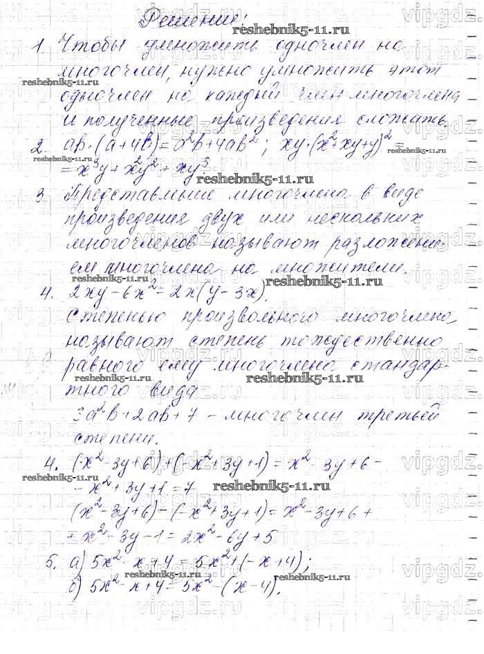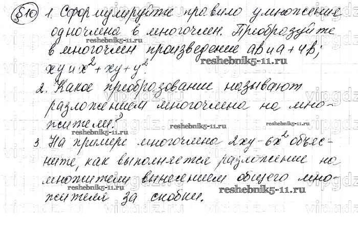 Готовая домашняя работа с ответами по Алгебре за 7 класс Макарычев, Миндюк, Нешков, Суворова Учебник Просвещение 2015 ФГОС - Контрольные вопросы и задания §10