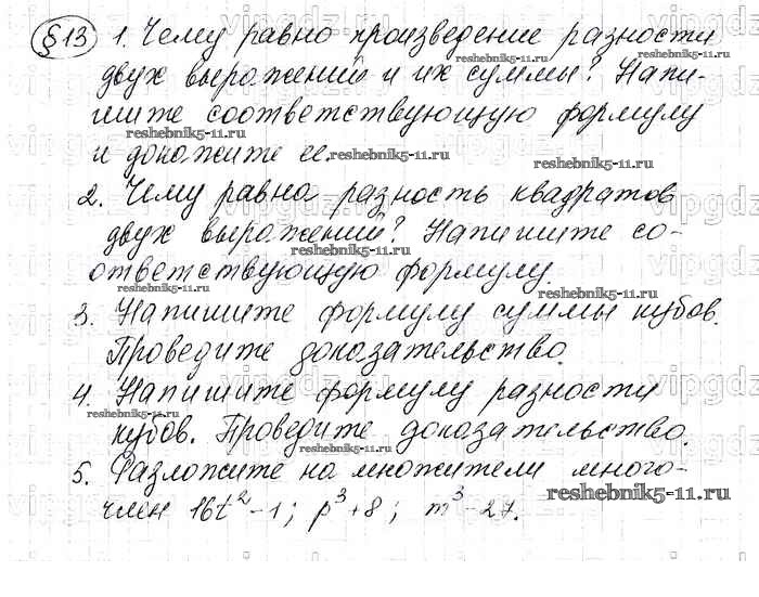Готовая домашняя работа с ответами по Алгебре за 7 класс Макарычев, Миндюк, Нешков, Суворова Учебник Просвещение 2015 ФГОС - Контрольные вопросы и задания §13