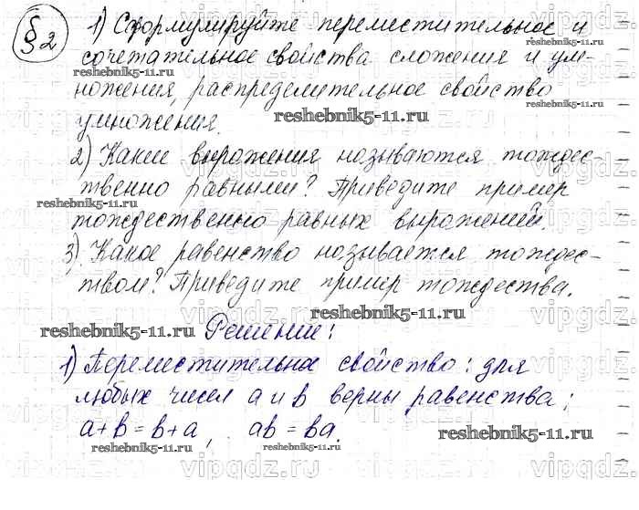 Готовая домашняя работа с ответами по Алгебре за 7 класс Макарычев, Миндюк, Нешков, Суворова Учебник Просвещение 2015 ФГОС - Контрольные вопросы и задания §2