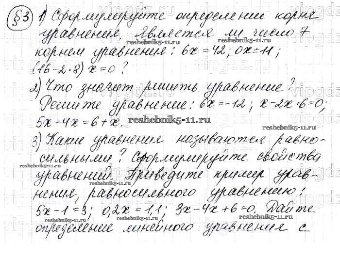 Алгебра за 7 класс Макарычев Учебник Просвещение контрольные вопросы и задания §3