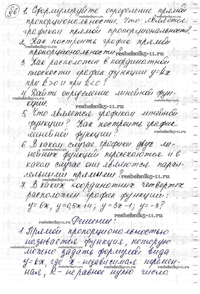 Алгебра за 7 класс Макарычев Учебник Просвещение контрольные вопросы и задания §6