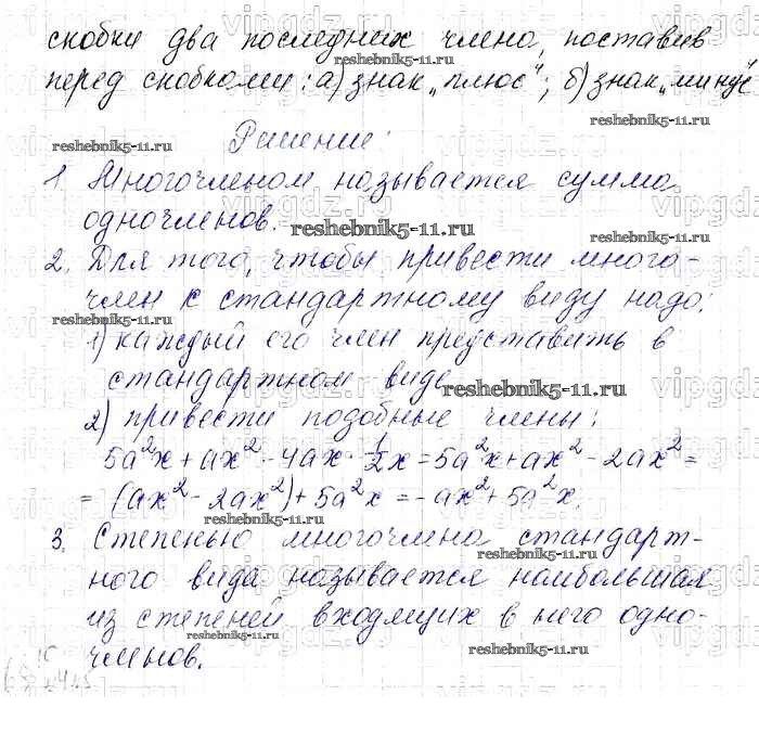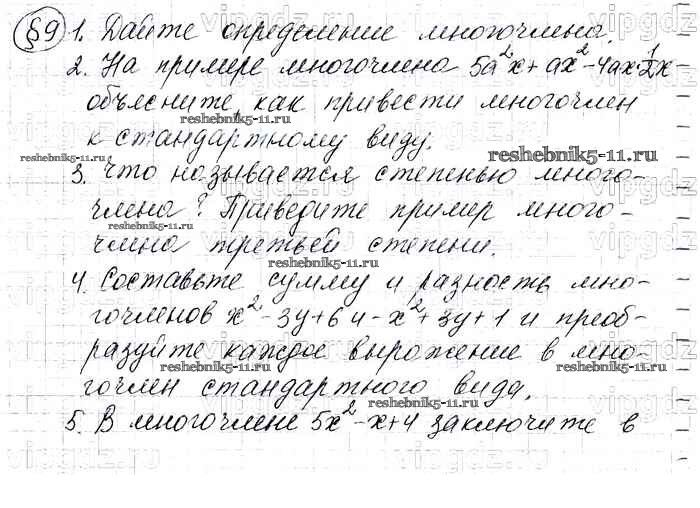 Готовая домашняя работа с ответами по Алгебре за 7 класс Макарычев, Миндюк, Нешков, Суворова Учебник Просвещение 2015 ФГОС - Контрольные вопросы и задания §9