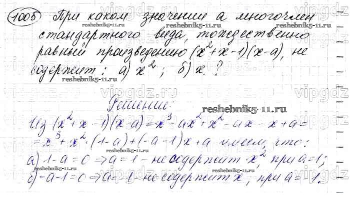 Готовая домашняя работа с ответами по Алгебре за 7 класс Макарычев, Миндюк, Нешков, Суворова Учебник Просвещение 2015 ФГОС - Упражнения 1005