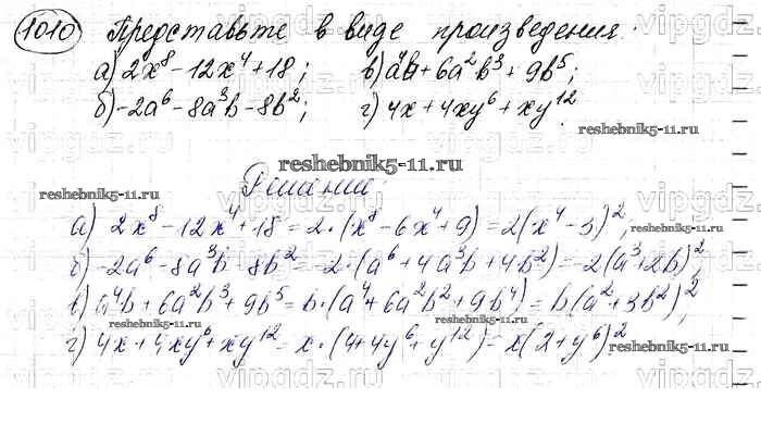 Готовая домашняя работа с ответами по Алгебре за 7 класс Макарычев, Миндюк, Нешков, Суворова Учебник Просвещение 2015 ФГОС - Упражнения 1010