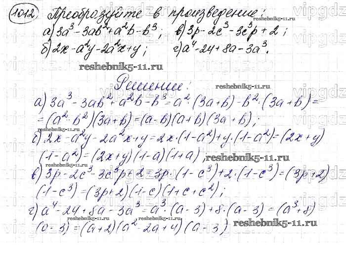 Готовая домашняя работа с ответами по Алгебре за 7 класс Макарычев, Миндюк, Нешков, Суворова Учебник Просвещение 2015 ФГОС - Упражнения 1012