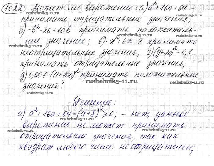 Готовая домашняя работа с ответами по Алгебре за 7 класс Макарычев, Миндюк, Нешков, Суворова Учебник Просвещение 2015 ФГОС - Упражнения 1022