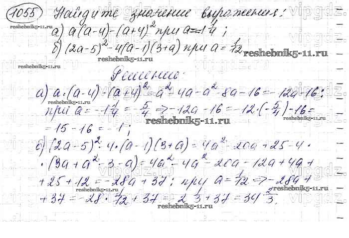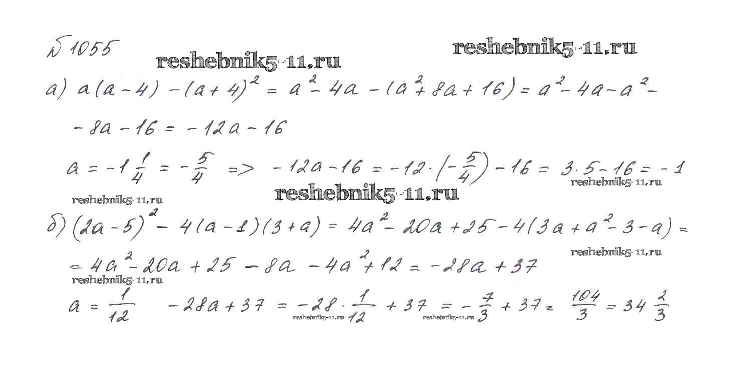 Готовая домашняя работа с ответами по Алгебре за 7 класс Макарычев, Миндюк, Нешков, Суворова Учебник Просвещение 2015 ФГОС - Упражнения 1055