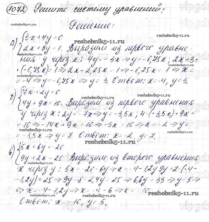 Готовая домашняя работа с ответами по Алгебре за 7 класс Макарычев, Миндюк, Нешков, Суворова Учебник Просвещение 2015 ФГОС - Упражнения 1072