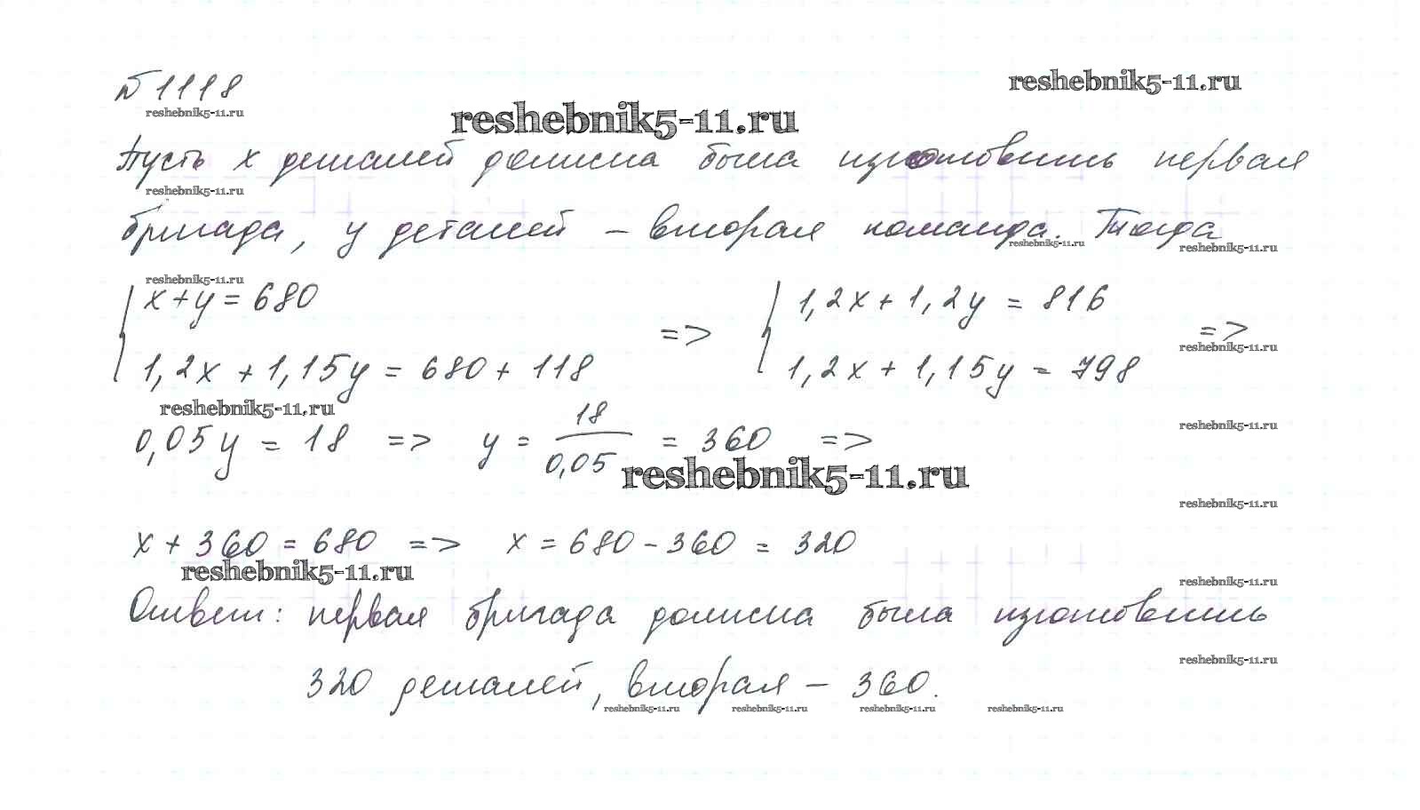 Готовая домашняя работа с ответами по Алгебре за 7 класс Макарычев, Миндюк, Нешков, Суворова Учебник Просвещение 2015 ФГОС - Упражнения 1118