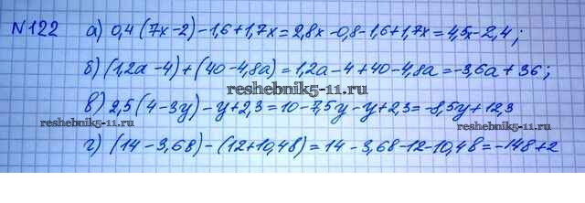 Готовая домашняя работа с ответами по Алгебре за 7 класс Макарычев, Миндюк, Нешков, Суворова Учебник Просвещение 2015 ФГОС - Упражнения 122
