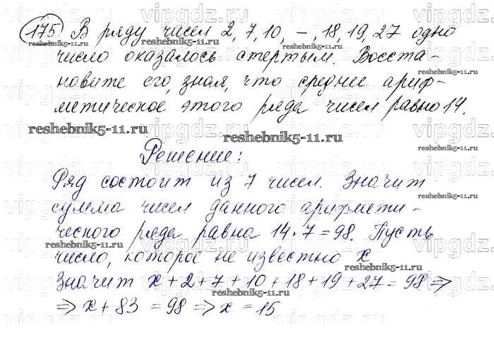 Готовая домашняя работа с ответами по Алгебре за 7 класс Макарычев, Миндюк, Нешков, Суворова Учебник Просвещение 2015 ФГОС - Упражнения 175