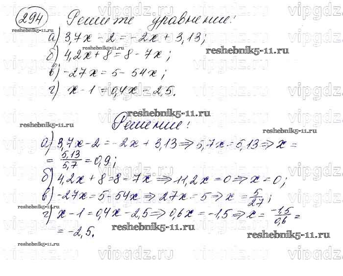 Готовая домашняя работа с ответами по Алгебре за 7 класс Макарычев, Миндюк, Нешков, Суворова Учебник Просвещение 2015 ФГОС - Упражнения 294