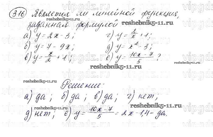 Готовая домашняя работа с ответами по Алгебре за 7 класс Макарычев, Миндюк, Нешков, Суворова Учебник Просвещение 2015 ФГОС - Упражнения 316