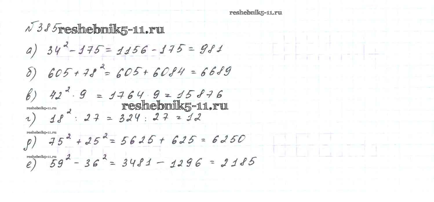 Готовая домашняя работа с ответами по Алгебре за 7 класс Макарычев, Миндюк, Нешков, Суворова Учебник Просвещение 2015 ФГОС - Упражнения 385