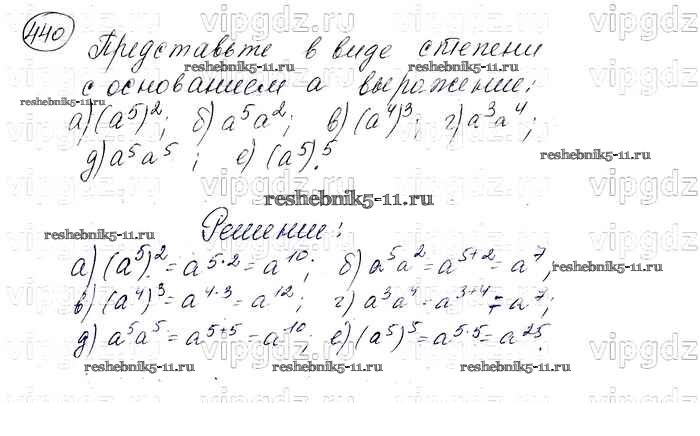 Готовая домашняя работа с ответами по Алгебре за 7 класс Макарычев, Миндюк, Нешков, Суворова Учебник Просвещение 2015 ФГОС - Упражнения 440