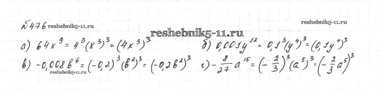 Готовая домашняя работа с ответами по Алгебре за 7 класс Макарычев, Миндюк, Нешков, Суворова Учебник Просвещение 2015 ФГОС - Упражнения 476