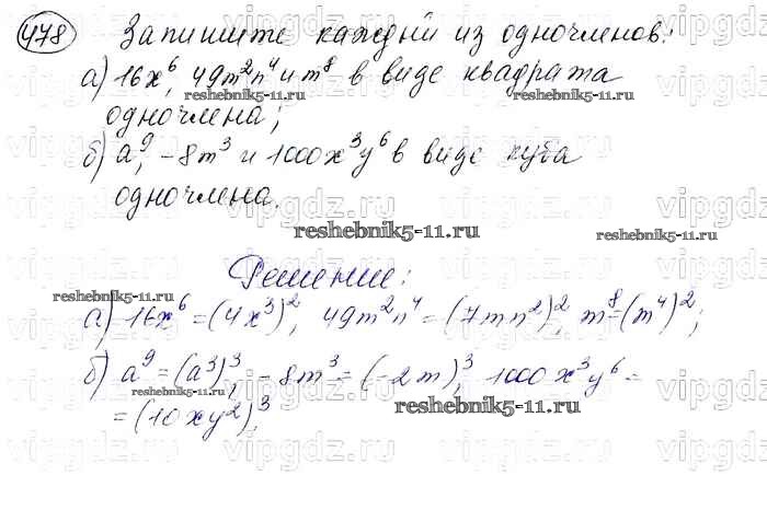 Готовая домашняя работа с ответами по Алгебре за 7 класс Макарычев, Миндюк, Нешков, Суворова Учебник Просвещение 2015 ФГОС - Упражнения 478