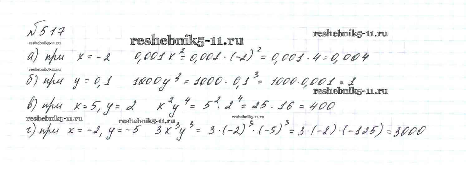 Готовая домашняя работа с ответами по Алгебре за 7 класс Макарычев, Миндюк, Нешков, Суворова Учебник Просвещение 2015 ФГОС - Упражнения 517