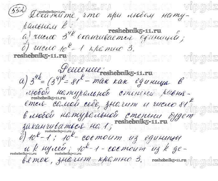 Готовая домашняя работа с ответами по Алгебре за 7 класс Макарычев, Миндюк, Нешков, Суворова Учебник Просвещение 2015 ФГОС - Упражнения 552