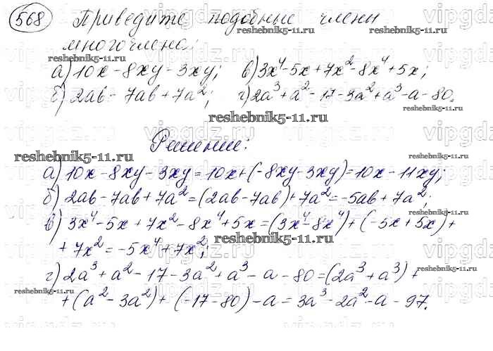 Готовая домашняя работа с ответами по Алгебре за 7 класс Макарычев, Миндюк, Нешков, Суворова Учебник Просвещение 2015 ФГОС - Упражнения 568