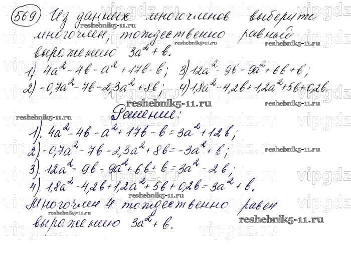 Готовая домашняя работа с ответами по Алгебре за 7 класс Макарычев, Миндюк, Нешков, Суворова Учебник Просвещение 2015 ФГОС - Упражнения 569