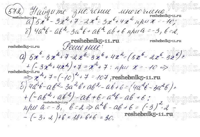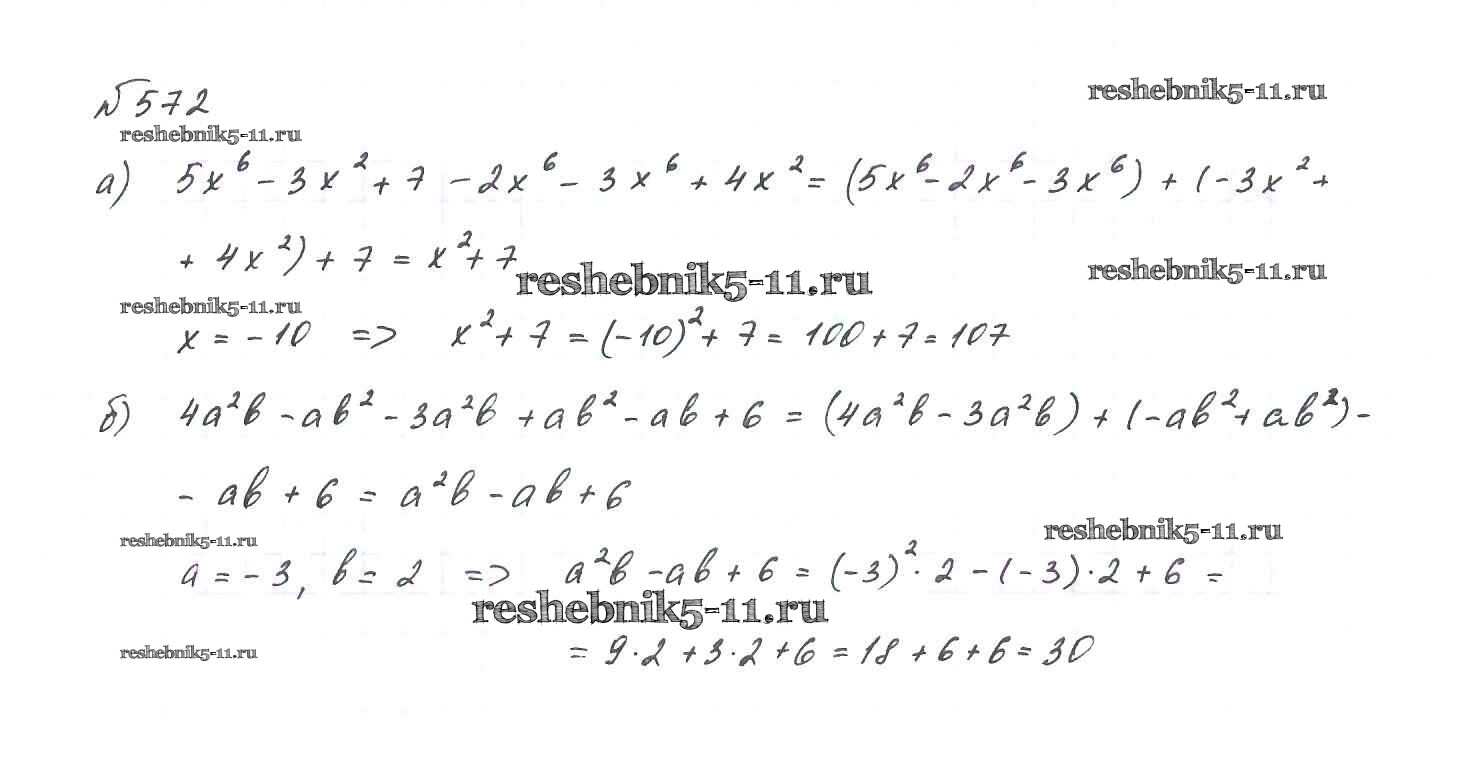 Готовая домашняя работа с ответами по Алгебре за 7 класс Макарычев, Миндюк, Нешков, Суворова Учебник Просвещение 2015 ФГОС - Упражнения 572