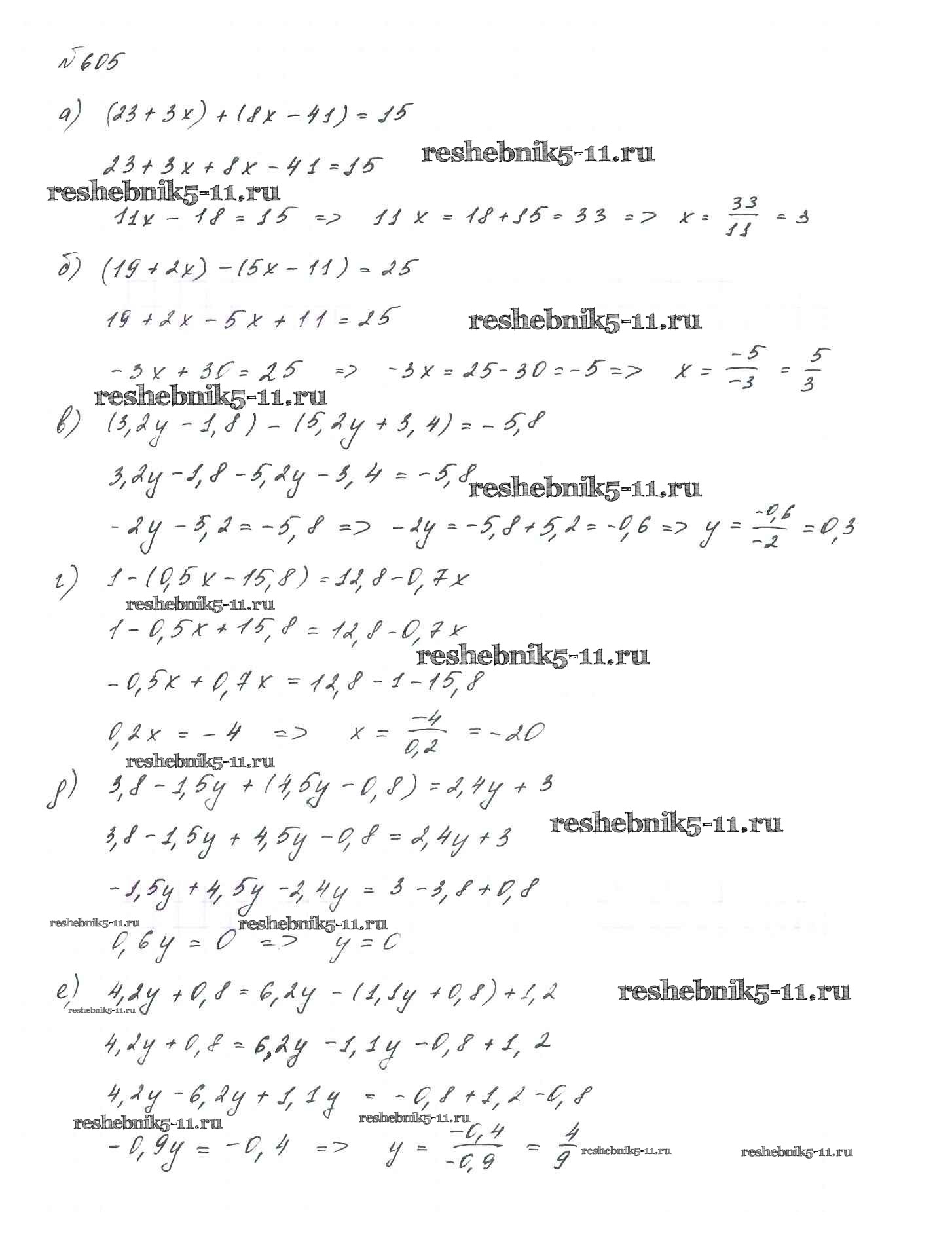 Готовая домашняя работа с ответами по Алгебре за 7 класс Макарычев, Миндюк, Нешков, Суворова Учебник Просвещение 2015 ФГОС - Упражнения 605