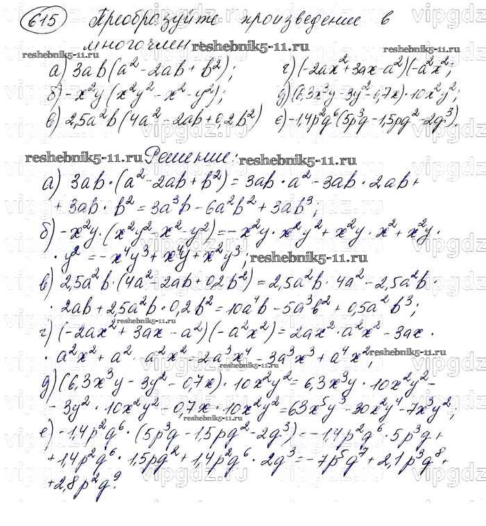 Готовая домашняя работа с ответами по Алгебре за 7 класс Макарычев, Миндюк, Нешков, Суворова Учебник Просвещение 2015 ФГОС - Упражнения 615