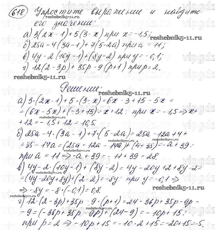 Готовая домашняя работа с ответами по Алгебре за 7 класс Макарычев, Миндюк, Нешков, Суворова Учебник Просвещение 2015 ФГОС - Упражнения 618
