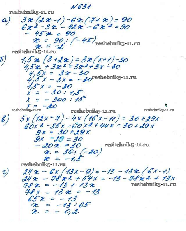 Готовая домашняя работа с ответами по Алгебре за 7 класс Макарычев, Миндюк, Нешков, Суворова Учебник Просвещение 2015 ФГОС - Упражнения 631