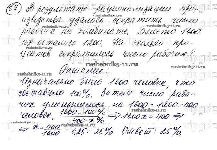 Готовая домашняя работа с ответами по Алгебре за 7 класс Макарычев, Миндюк, Нешков, Суворова Учебник Просвещение 2015 ФГОС - Упражнения 67