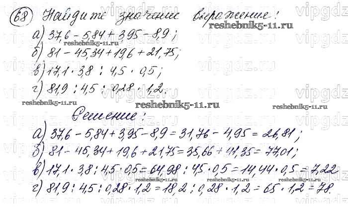 Алгебра за 7 класс Макарычев Учебник Просвещение упражнение 68